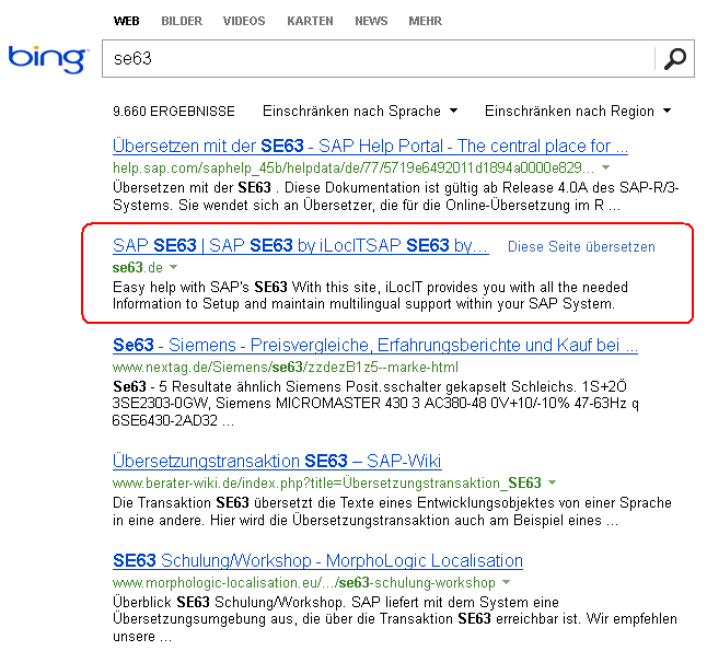 Wow, only two weeks up and our site is already #2 when searching for “SE63” on bing.com! 😉